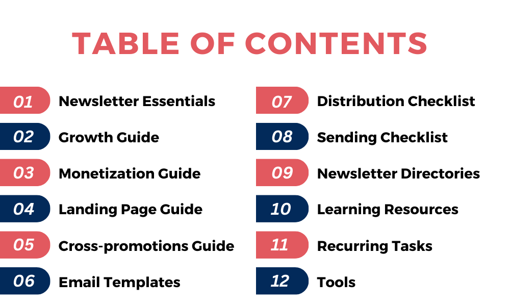 Uncover the secrets to newsletter success. It's packed with a growth guide, distribution checklist, cross-promotion insights, landing page expertise, monetization tips, essential tools and lot more. Elevate your newsletter game today!